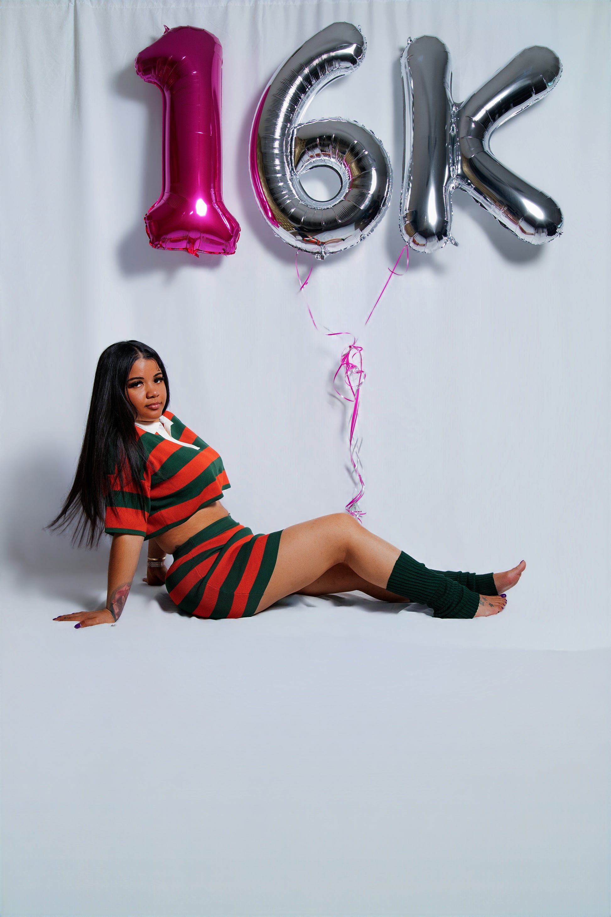 Size up!!!! Skirt band fights tight. Model wearing a medium. sweater material. Skirt does stretch but the waist band fits tight especially if you have wide hips or a big butt. This set is too cute!